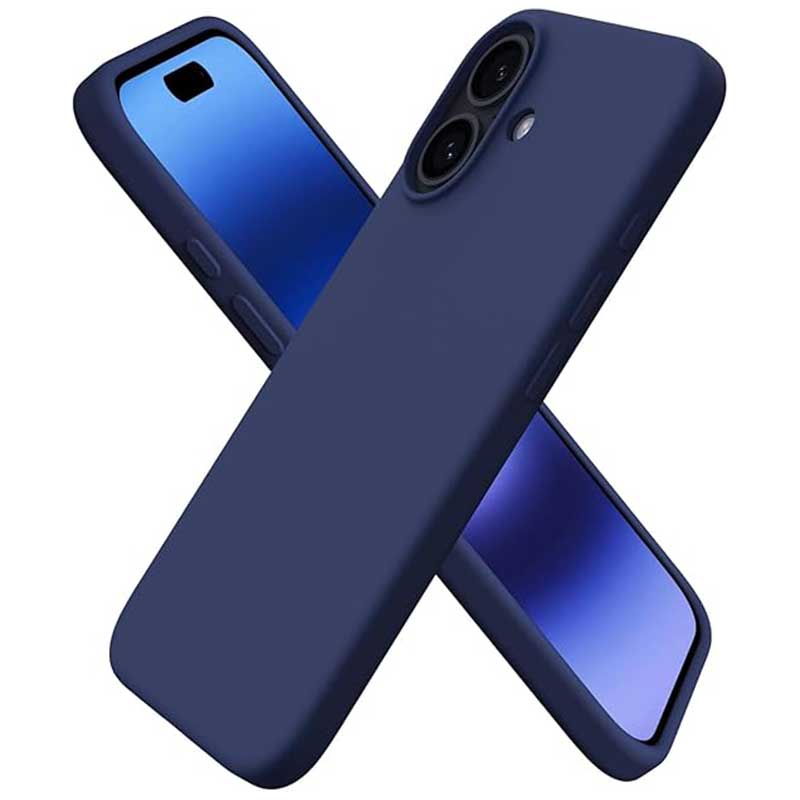 Тъмносин силиконов кейс за iPhone 16 – елегантна защита с кадифено усещане.