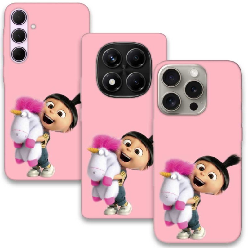 Добави сладост и настроение към телефона си с този розов силиконов калъф с Агнес и плюшеното ѝ еднорогче от Миньоните. Изработен от висококачествен TPU материал, калъфът осигурява надеждна защита от надрасквания, удари и прах. Дизайнът е ярък и забавен – идеален за фенове на анимацията и за подарък на дете или приятелка, която обича Миньоните. Предлага се за водещи модели телефони: iPhone, Samsung, Huawei, Xiaomi, Motorola и Honor.