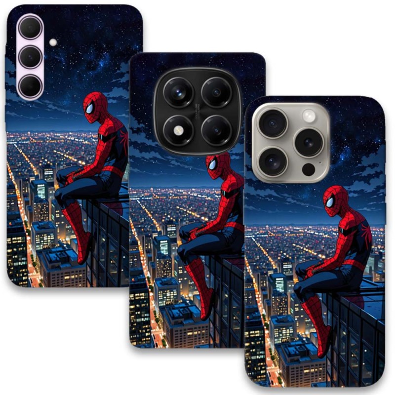 Пренеси екшъна в джоба си с калъф Спайдърмен – Нощният пазител. Дизайнът изобразява любимия супергерой, седящ на ръба на небостъргач и наблюдаващ осветения нощен град – символ на смелост и готовност да защитава.