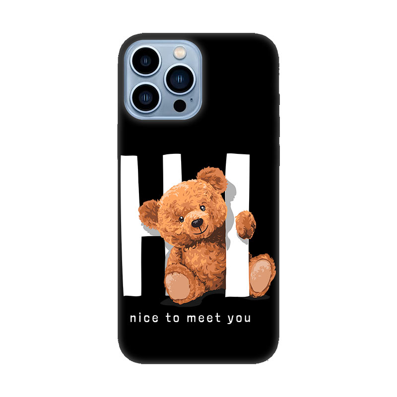 Вземи си сега дизайнерски кейс от серията Bear! Кейс Bear Nice to meet you е изцяло силиконов кейс със мека подложка от вътрешната страна на калъфчето за по-плътно прилягане по формите на телефона и да предпазва гърба на твоят iPhone 13 Pro Max от надрасквания. "Nice to meet you" кейса е с отделни отвори за камерите на телефона, с изпъкнала част за да защити при изпускане стъклата на камерите на твоят iPhone от надраскване и счупване. На допир калъфчетата от серията Bear за iPhone са с гумирано покритие за по-удобен захват и да предотврати хлъзгане и изпускане на телефона.