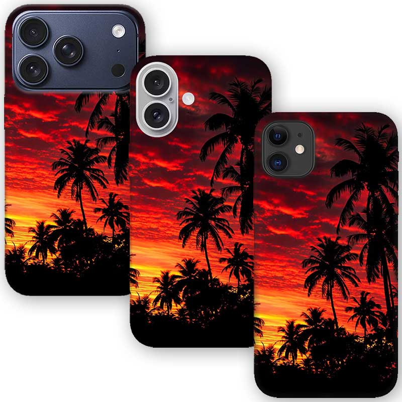 Калъфът Tropical Sunset за iPhone впечатлява с наситени цветове и тропическа атмосфера – огнено червен залез, силуети на палми и усещане за лято, свобода и екзотика. Дизайнът е идеален за хора, които обичат пътуванията, морето и ярките емоции.